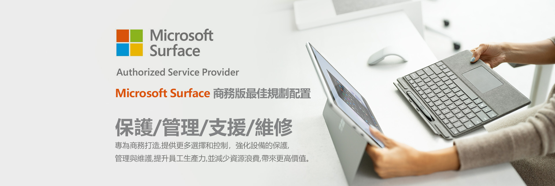 百事益國際榮獲 Microsoft 官方 ASP 授權,可執行包含 Surface 系列、筆電、周邊設備等多品項的原廠維修任務,